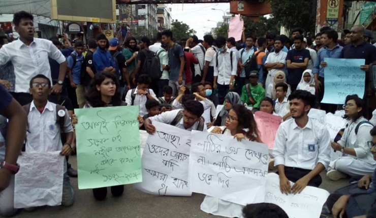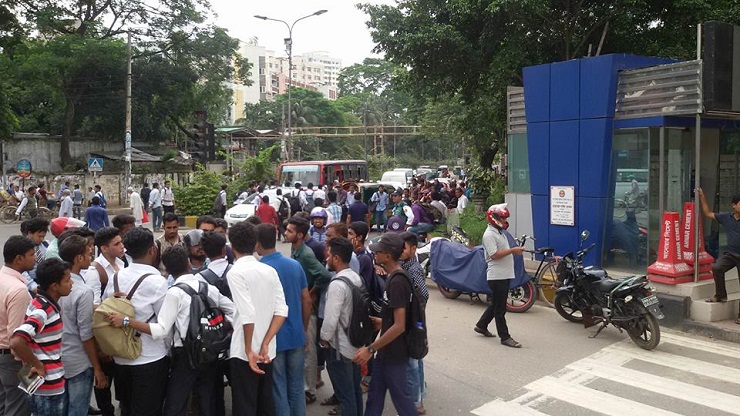 টানা তিন দিন রাজধানীর বিভিন্ন সড়কে অবস্থান নিয়ে যানচলাচল বন্ধ করে দিয়ে নয় দফা দাবি জানাচ্ছে ছাত্ররা। এর আগে রবিবার বিমানবন্দর সড়কে দুর্ঘটনার পরও তাৎক্ষণিক প্রতিক্রিয়ায় ওই সড়কে অবরোধ সৃষ্টি করে ব্যাপক গাড়ি ভাঙচুর করে তারা।