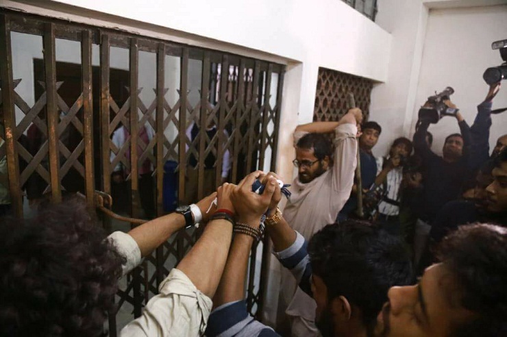 তারা উপাচার্যকে তার কক্ষের বাইরে এসে তাদের সঙ্গে কথা বলার দাবি জানচ্ছিলনে। কিন্তু উপাচার্য তার কক্ষের ভেতরে অবস্থান করছিলেন।