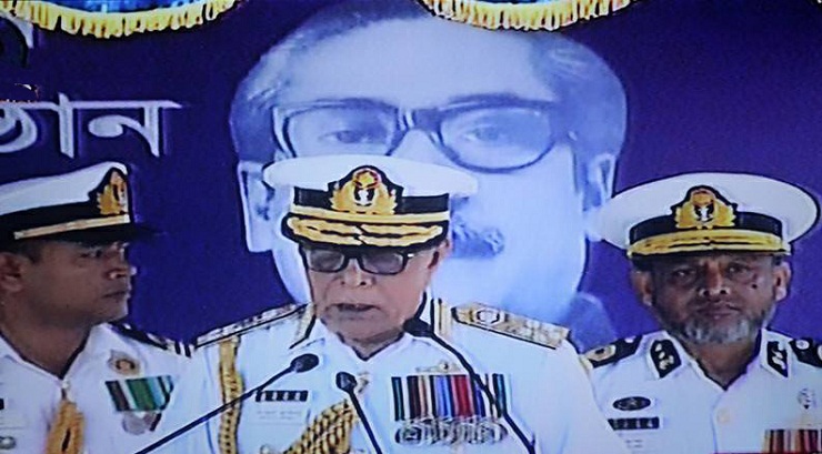 নৌবাহিনীর কর্মকর্তা ও নাবিকদের উদ্দেশ্যে রাষ্ট্রপতি বলেন, ‘যুদ্ধের পর প্রায় শূন্য থেকে যে নৌবাহিনীর যাত্রা শুরু হয়েছিলে, সময়ের পরিক্রমায় আজ তা একটি পেশাদার ও বহুমাত্রিক নৌবাহিনীতে পরিণত হয়েছে। বিশাল সমুদ্র আপনাদের কর্মক্ষেত্র। আমাদের মতো উন্নয়নশীল দেশের আর্থ-সামাজিক উন্নয়নের সামুদ্রিক সম্পদের বিশাল সম্ভাবনাকে কাজে লাগানোর কোনো বিকল্প নেই। এই সম্ভাবনাকে কাজে লাগতে বাংলাদেশ নৌবাহিনীকে অগ্রণী ভূমিকা রাখতে হবে।’ সমুদ্রসীমার সার্বভৌমত্ব সমুন্নত রাখা, চোরাচালান ও জলদস্যু দমন, জাহাজ চলাচলে ব্যবহৃত সমুদ্রপথের নিরাপত্তা বিধানে নৌবাহিনীকে সদা সতর্ক থাকার নির্দেশ দেন তিনি।