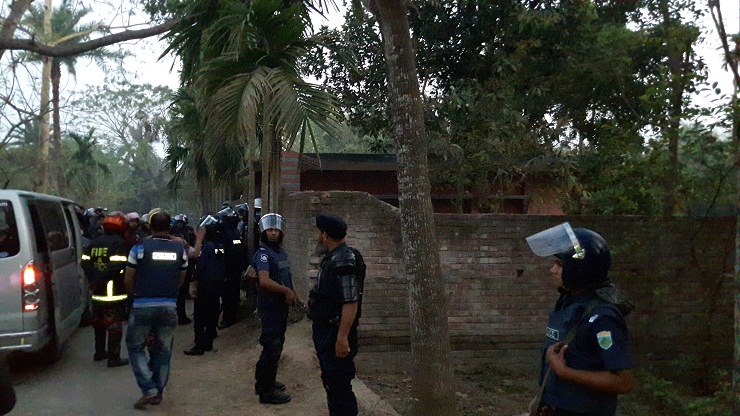 নাটোরের পুলিশ সুপার বিপ্লব বিজয় তালুকদার বলেন, বেশ কিছু জঙ্গি একটি বাড়িতে অবস্থান নিয়ে গোপন বৈঠক করছে এমন সংবাদের ভিত্তিতে দিঘাপতিয়া এলাকার দুবাই প্রবাসী ইকবাল সিকদারের বাড়িটি গতরাত তিনটার দিকে ঘিরে রাখে পুলিশ। জঙ্গিদের অবস্থান নিশ্চিত হওয়ার পর পুলিশ তাদের আত্মসমর্পনের জন্য বারবার আহ্বান জানায়। কিন্তু পুলিশের আহ্বানে তারা কোনোভাবেই সাড়া দিচ্ছিল না। পরে ফজর নামাজ পর এক জঙ্গি সদস্য পুলিশের আহ্বানে সাড়া দিয়ে ঘর থেকে বেরিয়ে আসে। পরে তার দেয়া স্বীকারোক্তি অনুযায়ী আরও তিনজনকে আটক করা হয়।