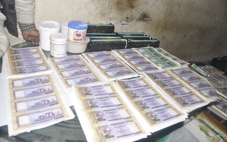 জাল টাকা তৈরির কারখানার সন্ধান পায় র্যাব রাজধানীর ধানমন্ডির একটি ফ্ল্যাটে । খবর পেয়ে গণমাধ্যমকর্মীরা ওই বাড়িতে ভিড় করেন। অভিযানে রুমের বিভিন্ন আসবাবপত্র থেকে বের করে আনা হয় কোটি কোটি টাকার জাল নোট। ঘরের ওয়াল আলমারি, শো-কেস, বিছানার নিচে ছিল হাজার টাকার বান্ডিল। এমনকি বাথরুমের ফলস ছাদের মধ্যে ব্যাগে রাখা ছিল টাকার ব্যাগ। যেখানে সব থেকে বেশি টাকা পাওয়া যায়। একে একে প্রতিটি ঘর তল্লাশি করে র্যাব সদস্যরা বের করে আনেন জাল টাকা এবং তা তৈরির সরঞ্জাম। এসময় ঘরজুড়ে শুধু নতুন টাকার ঘ্রাণ পাওয়া যাচ্ছিল।