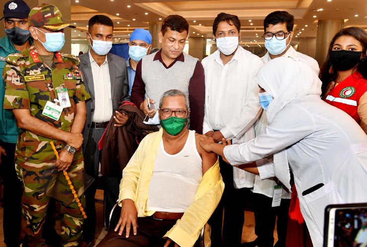 এদিকে বিএসএমএমইউতে টিকা নিয়েছেন নৌপরিবহন প্রতিমন্ত্রী খালিদ মাহমুদ চৌধুরী। টিকা নেয়ার পর প্রতিমন্ত্রী খালিদ মাহমুদ বলেন, ‘জীবনে অনেক টিকা নিয়েছি। করোনার এ টিকাও আলাদা কিছু না। আমি এখন মহামারি করোনা ফ্লু মুক্ত; এটা আমার বিশ্বাস। সবাইকে টিকা নিতে হবে।’