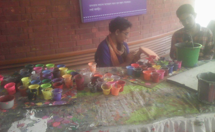 রবিবার সরেজমিনে চারুকলা অনুষদ ঘুরে দেখা গেছে, সেখানকার শিক্ষার্থীরা পহেলা বৈশাখকে কেন্দ্র করে নানা প্রতিকৃতি তৈরিসহ বিভিন্ন উপকরণ তৈরিতে ব্যস্ত সময় পার করছে। একপাশে চলছে মঙ্গল শোভাযাত্রার বিভিন্ন শিল্প কাঠামো নির্মাণের কাজ আর অন্যপাশে চলছে এ আয়োজনের ব্যয় নির্বাহের জন্য জল রঙের ছবি, পুতুল, সরাচিত্র ও মুখোশ বিক্রির কাজ। চারুকলার বর্তমান এমনকি প্রাক্তন শিক্ষার্থীরাও দিন-রাত অবিরাম কাজ করে যাচ্ছেন বর্ষবরণ দিনটিকে রাঙিয়ে তুলতে।