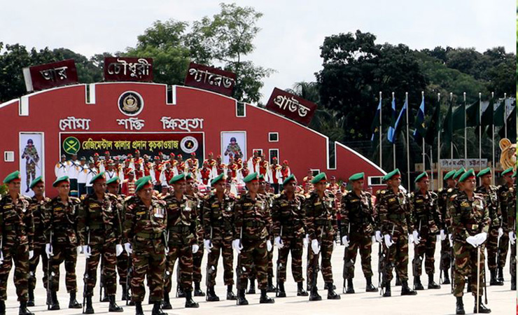 এ সময় ভাষণে জাতির পিতা বঙ্গবন্ধু শেখ মুজিবুর রহমানকে শ্রদ্ধাভরে স্মরণ করেন সেনাবাহিনীর প্রধান। তিনি বলেন, সেনাবাহিনীর সামরিক ঐতিহ্য অনুযায়ী যে কোনো ইউনিটের জন্য রেজিমেন্টাল কালার প্রাপ্তি অত্যন্ত গৌরবের বিষয়। সেনাপ্রধান ঊর্ধ্বতন নেতৃত্বের প্রতি আস্থা, পারস্পরিক বিশ্বাস, সহমর্মিতা এবং ভ্রাতৃত্ববোধ বজায় রেখে প্রশিক্ষণের মাধ্যমে সুশৃংখল, দক্ষ ও যোগ্য সেনাসদস্য হিসেবে গড়ে উঠার নির্দেশ দেন। সেই সঙ্গে তিনি সবাইকে পেশাদারিত্বের প্রত্যাশিত মান অর্জনের মাধ্যমে অভ্যন্তরীণ ও বাহ্যিক যেকোনো হুমকি মোকাবেলায় সদা প্রস্তুত থাকার নির্দেশ প্রদান করেন।