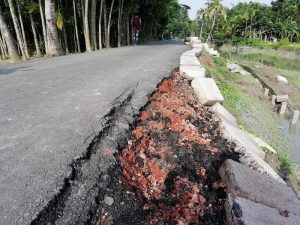 সরেজমিনে জানা যায়, নিম্নমানের ইটকণা (রাবিশ), পাথর দিয়ে রাস্তার পাশের খালের কিনারায় খুটি, ব্লক দিয়ে ভিত তৈরি না করে পিচঢালা হয়েছে। এতে অল্প সময়ে মতিরহাট বড় ব্রিজ সংলগ্ন সড়কের বিভিন্ন অংশে ফাটল ধরে খালে ধসে পড়ছে।