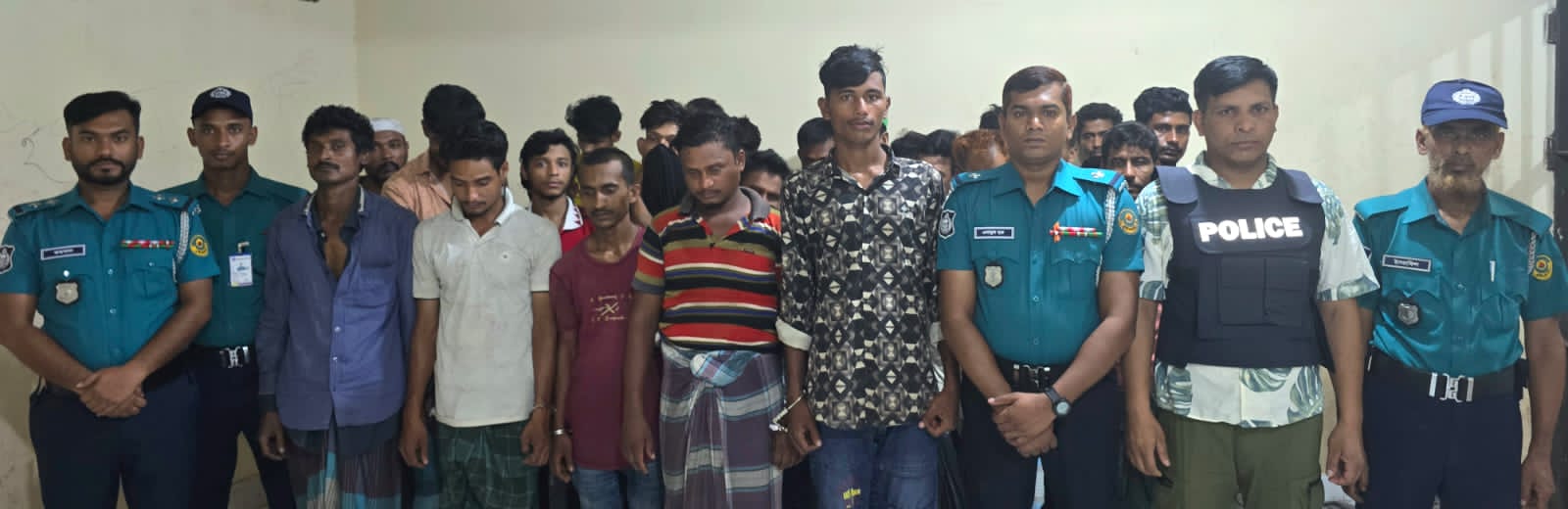 চান্দগাঁও থানার অফিসার ইনচার্জ মোঃ আফতাব উদ্দিনের নেতৃত্বে পুলিশ পরিদর্শক তদন্ত/তানভীর আহমেদ, এসআই/ আনিসুর রহমান, এসআই/সুমন মিয়া, এসআই/কাজী মনিরুল করিম, এসআই/নুরুজ্জামান, এএসআই/বিপ্লব শামীম রেজা সঙ্গীয় ফোর্স সহ ২৪ এপ্রিল রাত ০৪:১০ ঘটিকার সময় পৃথক পৃথক অভিযান পরিচালনা করিয়া আসামী ১। মোশারফ হোসেন (৩২), পিতা-মৃত আব্দুর রশিদ খলিফা, মাতা-রাহিমা বেগম, সাং-তারা বুনিয়া, খলিফের বাড়ী, ০২নং ওয়ার্ড, বাটিখাল ঘাটা ইউপি, থানা-কাঠালিয়া, জেলা-ঝালকাঠি, বর্তমানে-বাহির সিগন্যাল, বোর্ড স্কুল, রিদোয়ান চৌধুরী কলোনী, থানা-চান্দগাঁও, জেলা-চট্টগ্রাম, ২। মোঃ আব্দুর শুক্কুর (৫৬), পিতা-মৃত আব্দুল আলী, মাতা-মৃত রাবেয়া খাতুন, সাং-ডালিয়া পাড়া, মফিজুর রহমান এর বাড়ী, থানা-চান্দগাঁও, জেলা-চট্টগ্রাম, ৩। মোঃ মিরাজ (৩৪), পিতা-মোঃ মানিক, মাতা-শাহানুর বিবি, সাং-চর চকিনা, তালুকদার বাড়ী, ০৪নং ওয়ার্ড, কালমা ইউপি, থানা-লালমোহন, জেলা-ভোলা, বর্তমানে-বাহির সিগন্যাল, বোর্ড স্কুল, থানা-চান্দগাঁও, জেলা-চট্টগ্রাম (ভাসমান), ৪। মোঃ সাইফুল ইসলাম (২০), পিতা-জহির উদ্দিন, মাতা-সুফিয়া খাতুন, সাং-সুবর্ণচর, কালাম এর বাড়ী, ০৪নং ওয়ার্ড, থানা-চরজব্বর, জেলা-নোয়াখালী, বর্তমানে-বাহির সিগন্যাল, বোর্ড স্কুল সংলগ্ন, জিকো কলোনী, থানা-চান্দগাঁও, জেলা-চট্টগ্রাম, ৫। মোঃ সাকিব (১৯), পিতা-মোঃ ইব্রাহীম, মাতা-পারভীন, সাং-চাইলাহাট, বাগান বাড়ী @ নতুন বাড়ী, মাইজ ভান্ডার, থানা-ফটিকছড়ি, জেলা-চট্টগ্রাম, বর্তমানে-বাহির সিগন্যাল, বোর্ড স্কুল, জিকো কলোনী, থানা-চান্দগাঁও, জেলা-চট্টগ্রাম, ৬। মোঃ ইসমাইল (২০), পিতা-মোঃ আব্দুর রাজ্জাক, মাতা-রোকেয়া বেগম, সাং-পোয়া চর, গাংচিল, চিটাংগা বাড়ী, থানা-কোম্পানীগঞ্জ, জেলা-নোয়াখালী, বর্তমানে-নজু মিয়ার হাট, বড় বাড়ী, আজম মেম্বারের ভাড়া ঘর, থানা-হাটহাজারী, জেলা-চট্টগ্রাম, ৭। মোঃ সিদ্দিক (২৫), পিতা-মোঃ আব্দুর রাজ্জাক, মাতা-রোকেয়া বেগম, সাং-পোয়া চর, গাংচিল, চিটাংগা বাড়ী, থানা-কোম্পানীগঞ্জ, জেলা-নোয়াখালী, বর্তমানে-নজু মিয়ার হাট, বড় বাড়ী, আজম মেম্বারের ভাড়া ঘর, থানা-হাটহাজারী, জেলা-চট্টগ্রাম, ৮। মোঃ রাসেল (২৩), পিতা-জাফর আলম, মাতা-রাশেদা বেগম, সাং-নন্দির পাড়া, মতসনি বরের বাড়ী, ০৯নং ওয়ার্ড, থানা-পেকুয়া, জেলা-কক্সবাজার, বর্তমানে-মোহরা, মেম্বারের কলোনী, থানা-চান্দগাঁও, জেলা-চট্টগ্রাম, ৯। মোঃ মিঠন (২৭), পিতা-মৃত শাহ আলম, মাতা-জাহানারা বেগম, সাং-উত্তর জকদানন্দ, হারুনের বাড়ী, ৫নং ওয়ার্ড, থানা-কবিরহাট, জেলা-নোয়াখালী, বর্তমানে-চক বাজার পোষ্ট অফিস সংলগ্ন হক কলোনী, থানা-চকবাজার, জেলা-চট্টগ্রাম, ১০। মোঃ এরশাদ (৪৩), পিতা-মৃত ধনু মিয়া, মাতা-রোকেয়া বেগম, সাং-বার্মা কলোনী, আকবরের বাড়ী, ৭নং ওয়ার্ড, থানা-বায়েজীদ বোস্তামী, 