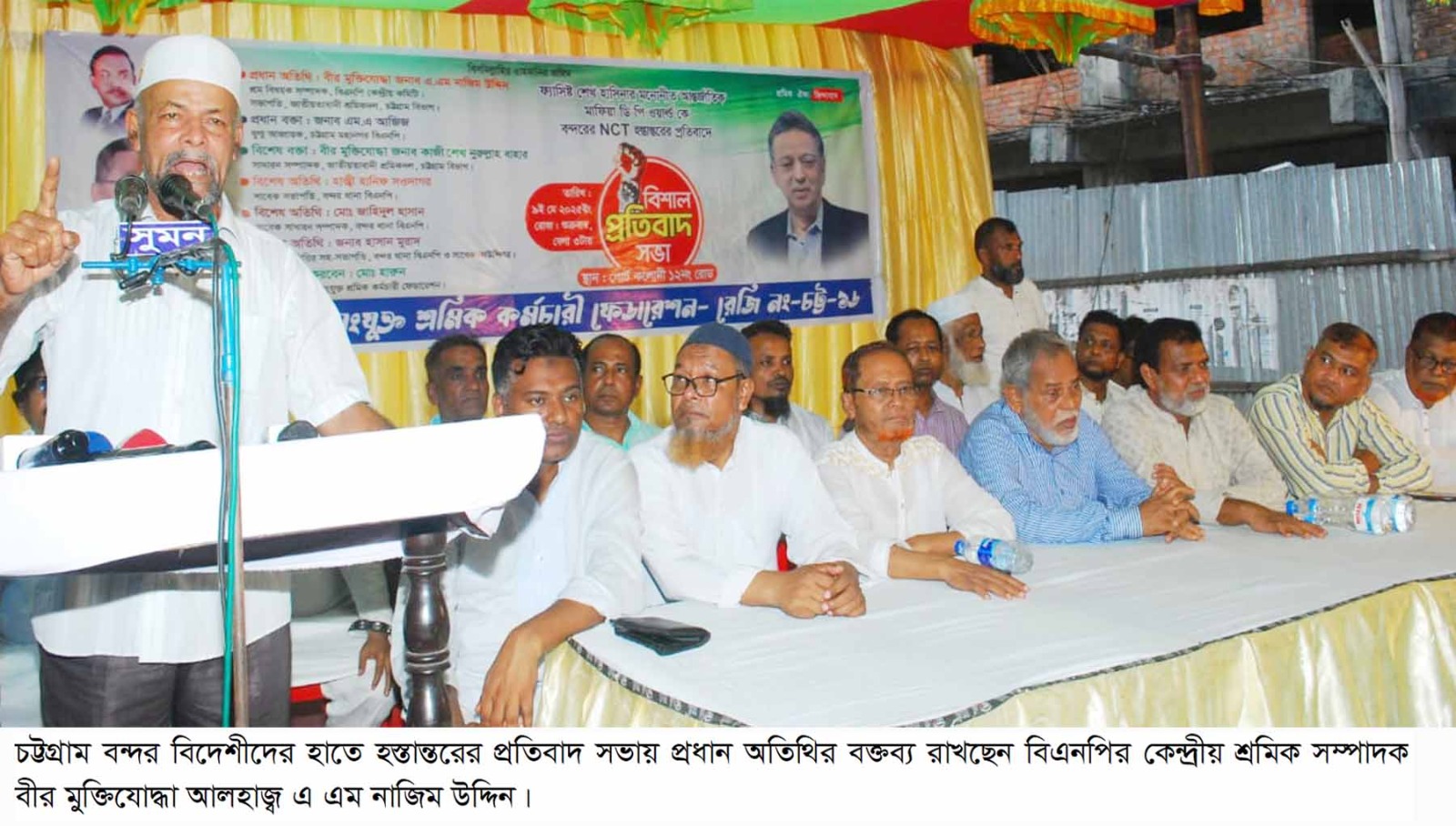 স্বৈরাচারীর ফ্যাসিষ্ট শেখ হাসিনা মনোনীত আন্তর্জাতিক মাফিয়া ডিপি ওয়ার্ল্ডকে বন্দর এনসিটি হস্তান্তরের প্রতিবাদে বিশাল শ্রমিক জনসভায় সভাপতিত্ব করেন মোহাম্মদ হারুন, সঞ্চালনা করেন তসলিমা হোসেন সেলিম।