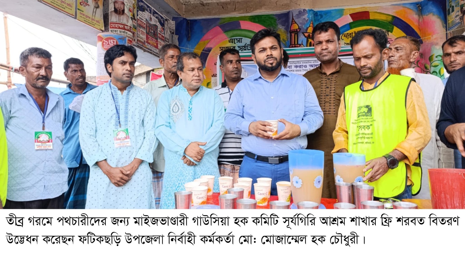 মাইজভাণ্ডারী গাউসিয়া হক কমিটি বাংলাদেশ এর ত্রাণ ও দুর্যোগ মোকাবেলা সেলের সহযোগিতায় সূর্যগিরি আশ্রম শাখার উদ্যোগে চলমান তীব্র তাপদাহে পিপাসার্ত মানুষের মধ্যে সুপেয় শরবত (লেবু, ট্যাং, চিনি ও তরমুজ মিশ্রিত) বিতরণ করা হয়।